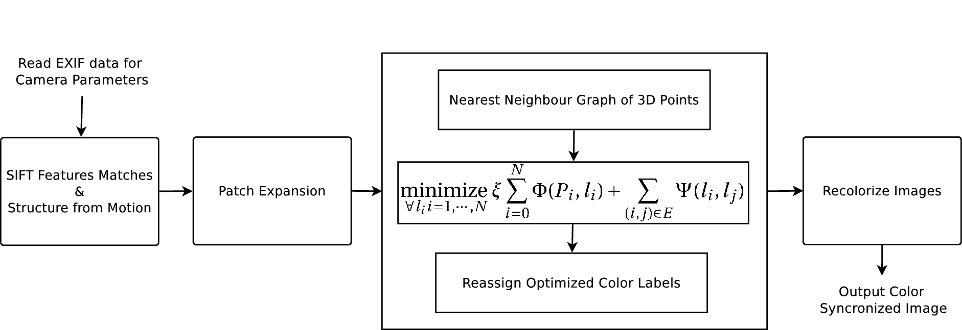 Keywords : Multiview color synchronization, 3D reconstruction, colorization, Potts Penalty Optimization.