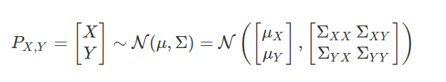In plain English, conditioning is how the distribution of the other variable looks like when the first variable achieves a particular value. The resulting distribution after conditioning is also a Gaussian distribution. Means and variance of this new distribution are as follows: