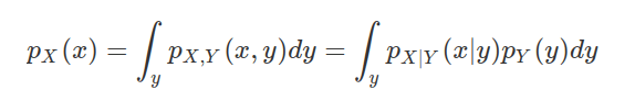 In plain English, what this means is that, we are interested in probability distribution of X=x. For this we need to consider all possible values of y and average over it. Mathematically this is written,