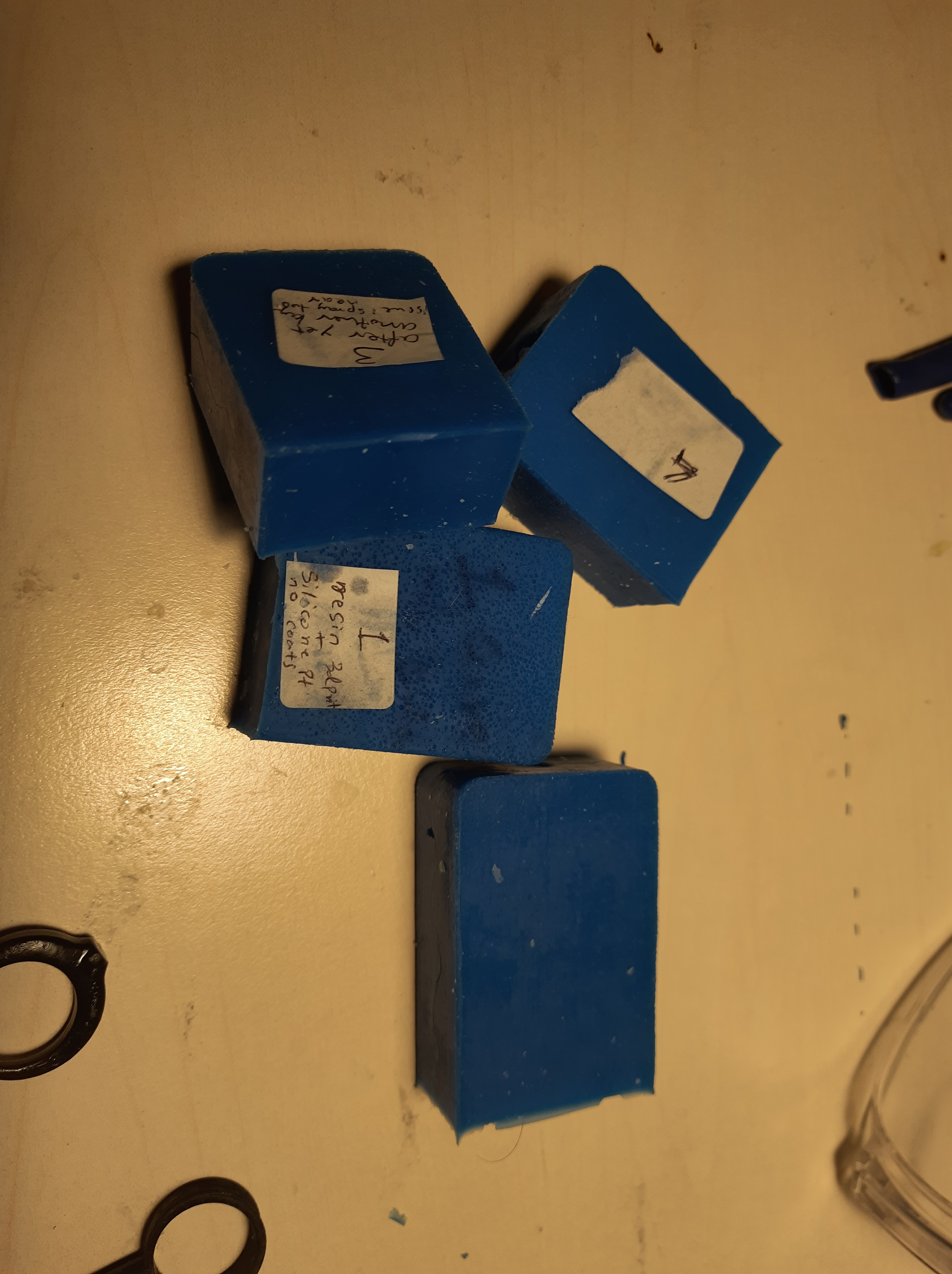 My molds still had some air bubbles. For the future, a vaccum degassing unit is on my wishlist. Also note that the silicone rubbers are sensitive to room temperature and humidity. I have a room thermometer and hygrometer setup. Usually 23 deg C and 50 % humidity works well. Colder rooms below 18 deg C are bad for silicone curing process.