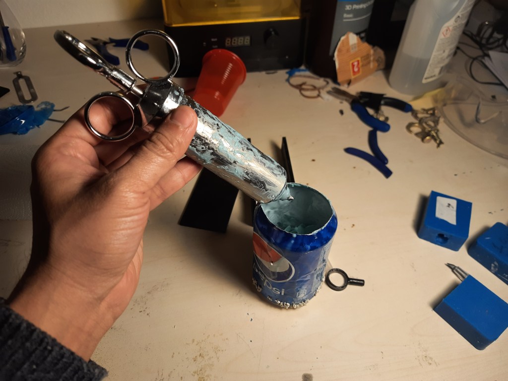 This time I am using a metal springe to inject the wax into the mould. I purchased this springe from aliexpress, under the name of BBQ marinade injector. This was suprizingly hard to purchase locally for me. I would say, this more or less worked for me. I made additional sprues using bees-wax.