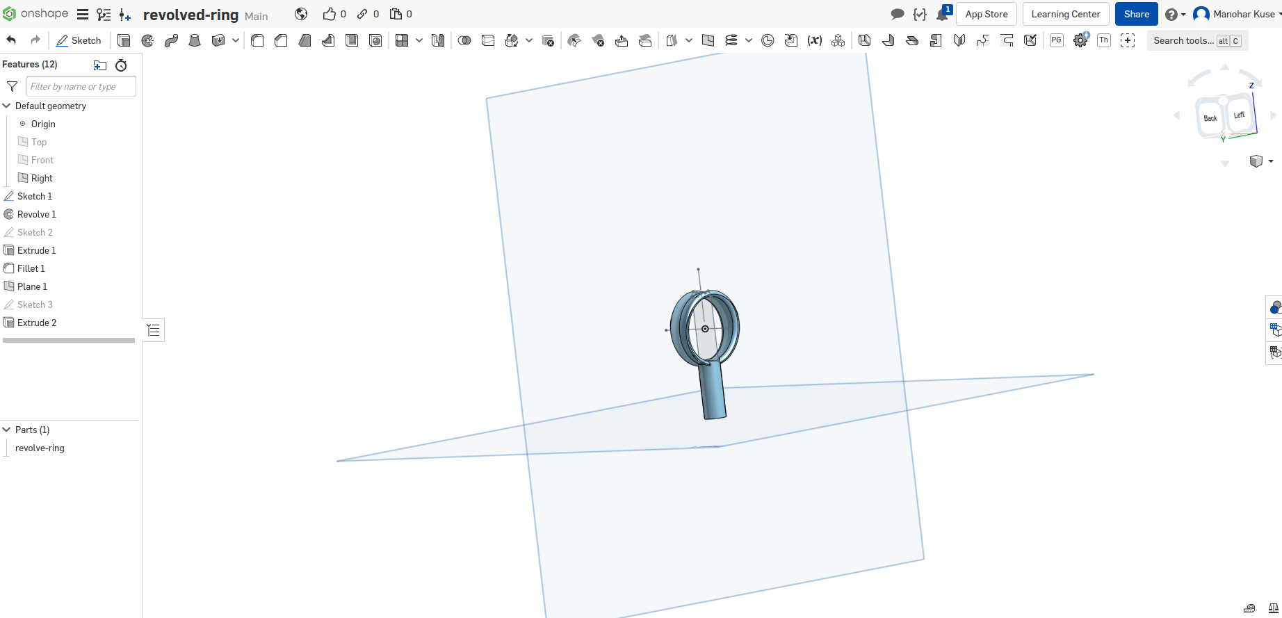 In Onshape, I do have a handful of designs. However, for this year I make use of a really simple design. The idea is to setup my tooling and realize a brass ring.