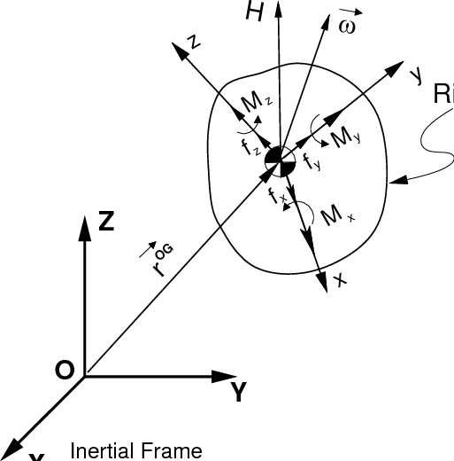 . The rotation matrix can be composed with, for example, Euler angles. The angles are represented in the spatial frame (world-frame, w) and as a function of time. Thus